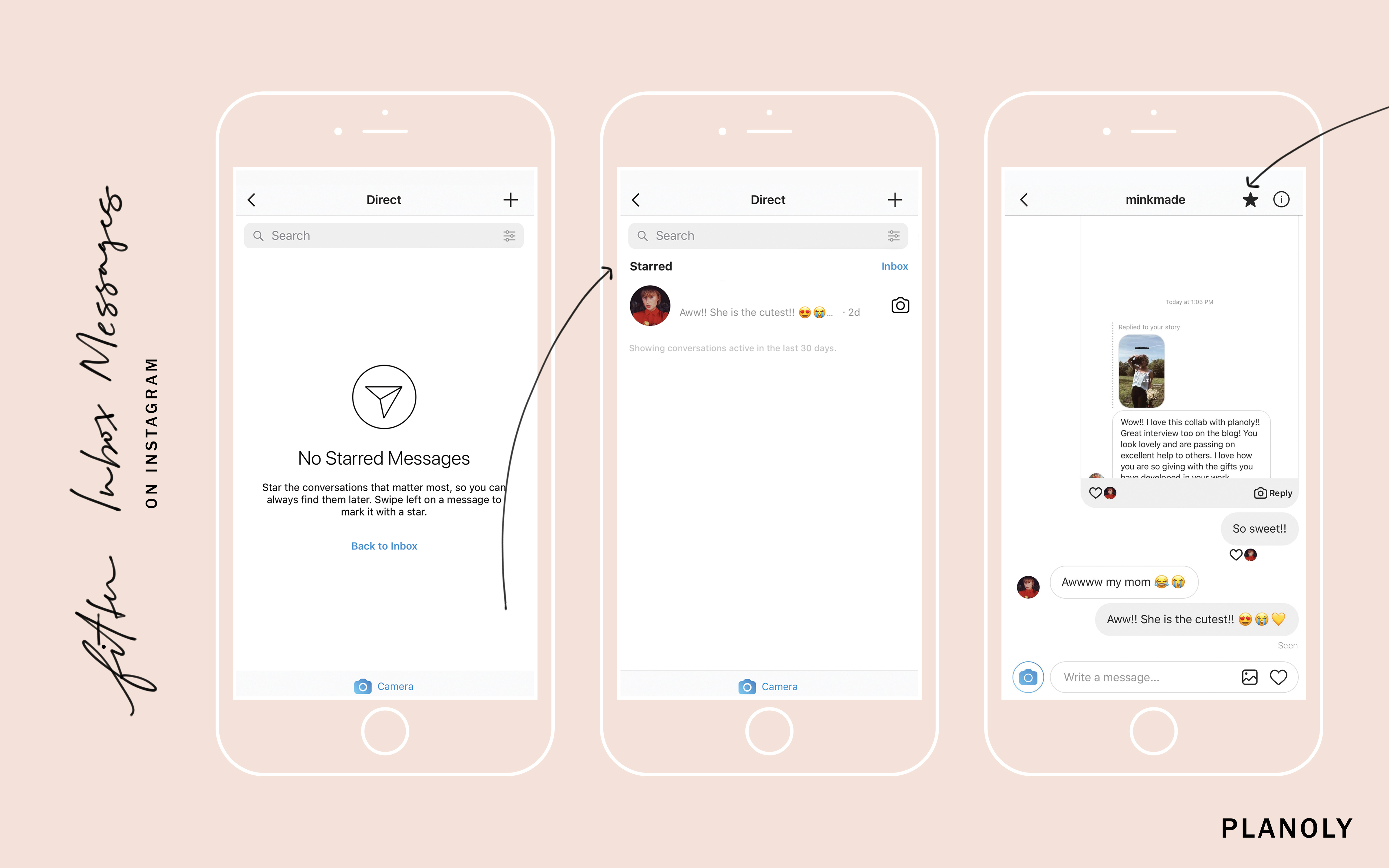 Instagram's filter and flag feature for direct messaging is a game-changer for organizing and keeping up with messages and responses. Similar to PLANOLY's comment management tool, the direct messaging feature allows users to filter messages by inbox, unread, or flagged. For influencers and businesses with a large influx of incoming messages, the tool is immensely helpful for responding to relevant messages in a timely manner. The flag feature acts as a bookmarking tool, allowing you to easily return to key message threads.