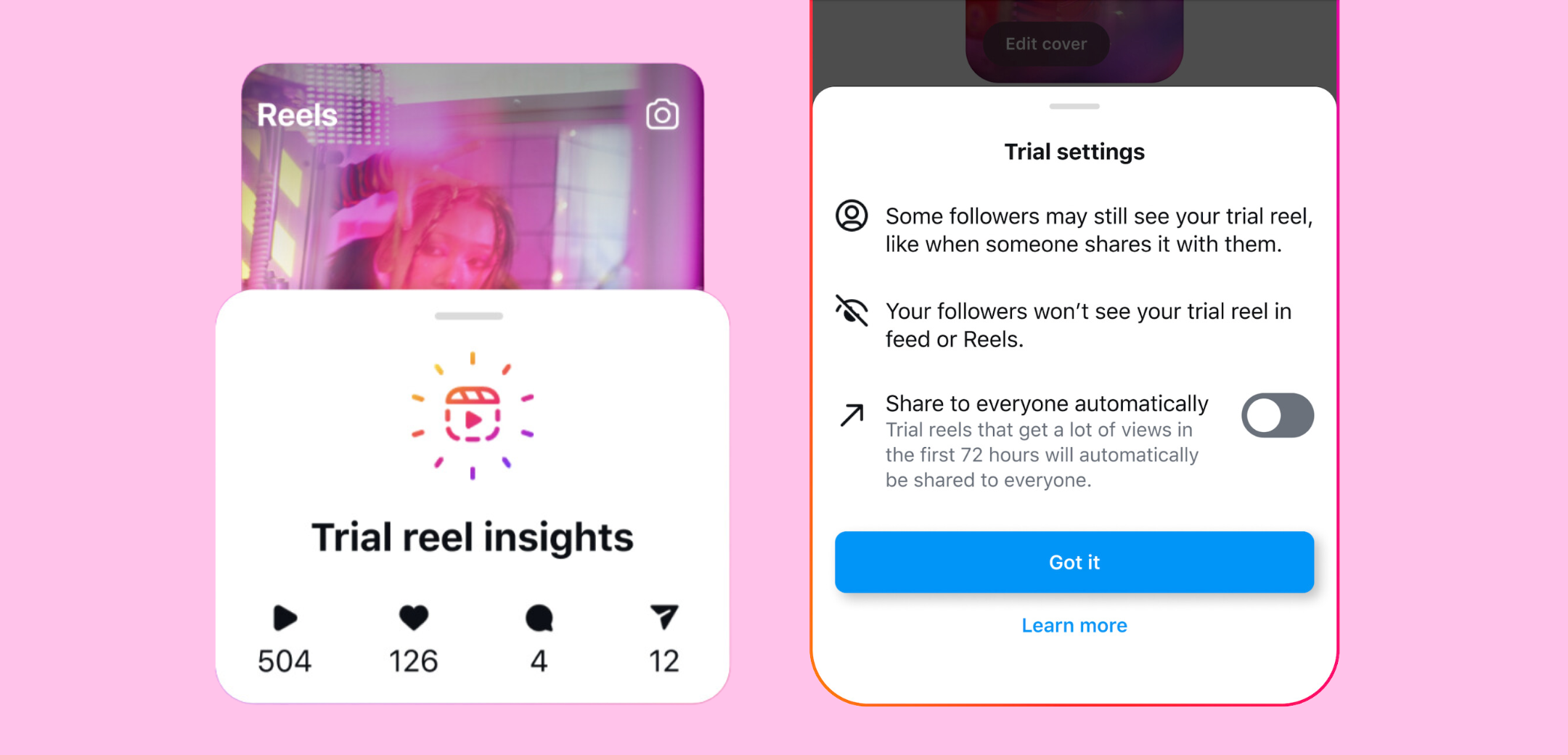 Here’s how it works: if you’ve been curious about trying out new content styles or stepping outside your niche, Trial Reels lets you share your experiments with non-followers first. If the Reel gains traction and you’re happy with its performance, you can choose to share it with your followers. You can also set it up so that high-performing Trial Reels automatically go live to your audience once the trial period ends.